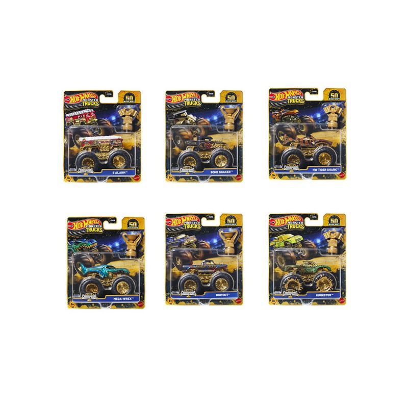 Célébrer le 50ème anniversaire du monster truck original, avec un assortiment de 10 camions 1/64 à collectionner.