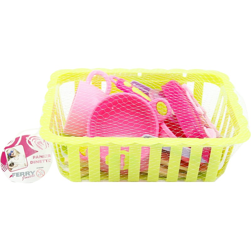 Ce panier contient : 1 plaque chauffante, 1 poele, 1 casserole, 3 ustensiles de cuisine, 2 tasses, 2 sous-tasses. Panier dînette complet pour préparer un délicieux repas, servir ses invités imaginaires et jouer au chef à la maison.
