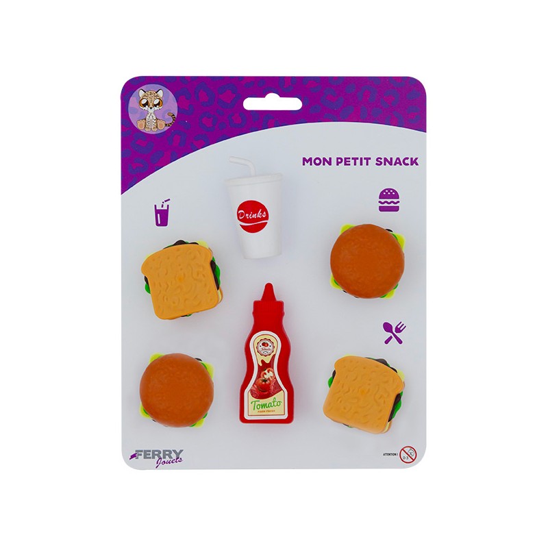 4 sandwichs (2 hamburger, 2 croques monsieur) 1 pot de ketchup, 1 boisson. Mon petit snack pour imaginer son propre fast-food à la maison et préparer de savoureux menus à partager.