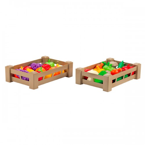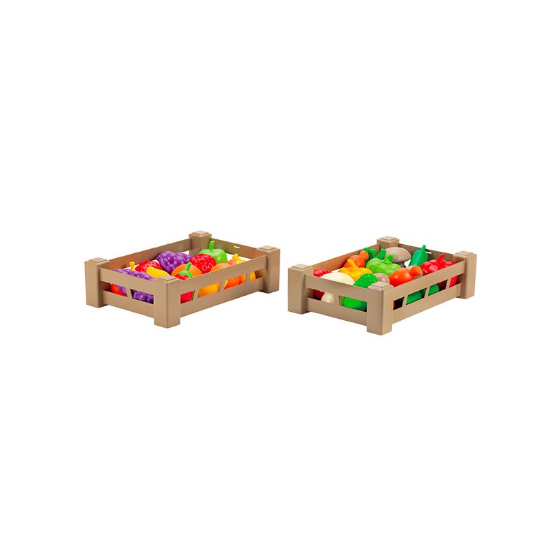 2 cagettes de 26,5 cm de long empilables et garnies soit d'une sélection de 15 fruits, soit de 15 légumes de saison. Recommandé dès 18 mois. Origine France Garantie.