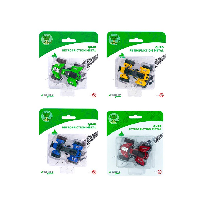 Quad 7 cm en métal à rétrofriction 2 modèles, 4 couleurs (vert, rouge, bleu, jaune)