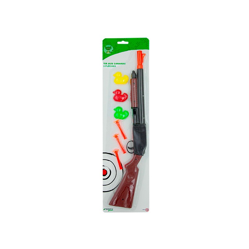 1 fusil, 3 canards et 3 flechettes. Jeu de tir aux canards pour samuser à viser juste et remporter des récompenses dans des parties pleines de fun. Age : 3a+