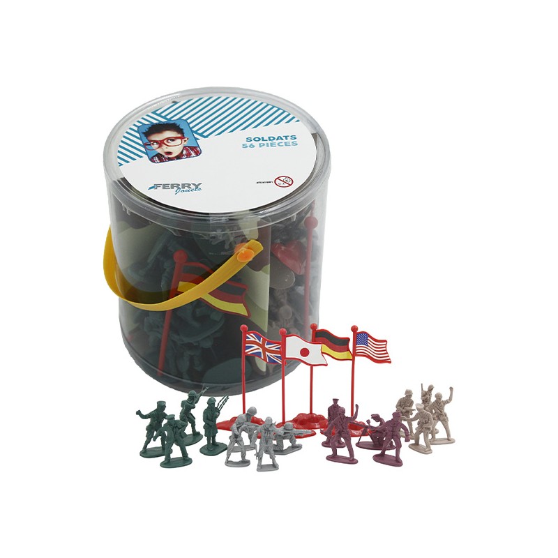 Tube militaire de 56 pcs : soldats, panneaux et drapeaux