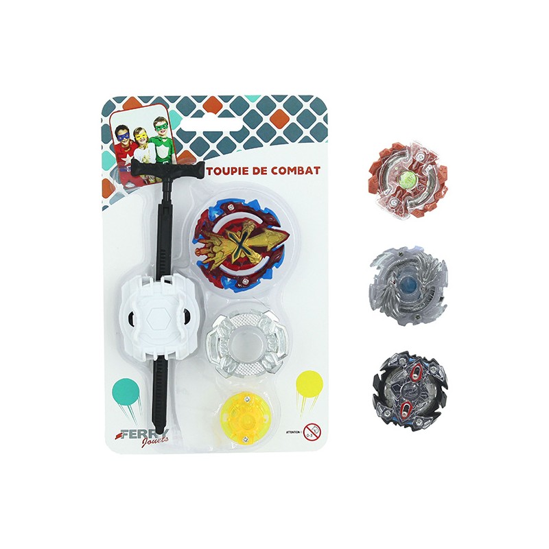1 toupie à monter, 1 lanceur. Toupie de combat pour saffronter en duel, faire tourner à toute vitesse et remporter la victoire avec stratégie et adresse.