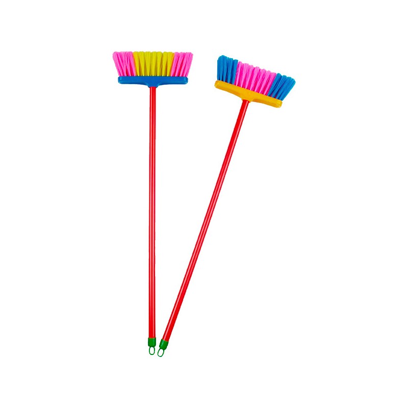Balai pour enfants Pure Fresh en plastique de grande qualité avec manche et poils bicolores. Les poils sont fabriqués dans un matériau PET 100% recyclé ! Dimensions : 18 x 4,5 x 61 cm. A partir de 3 ans