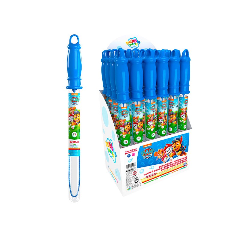Sabre à bulles de 120 ml licence La Pat'Patrouille. Hauteur du sabre : 36 cm.