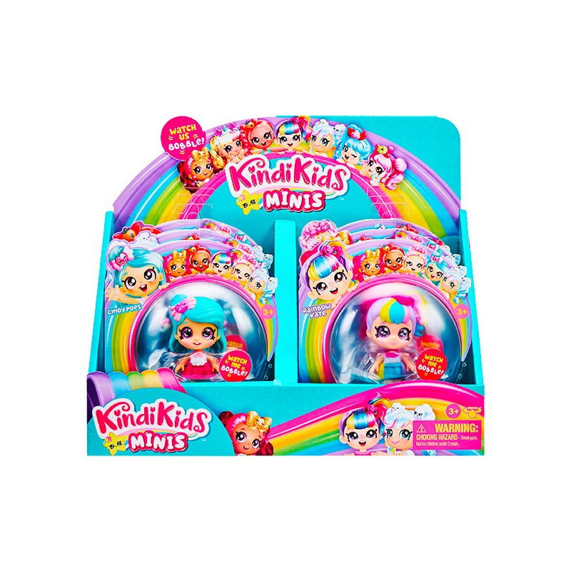 Découvrez les Kindi Kids que vous connaissez et aimez en version mini ! Ces poupées sont peut-être mini, mais elles sont surtout super mignonnes, avec leurs grands yeux scintillants et une tête rebondissante !