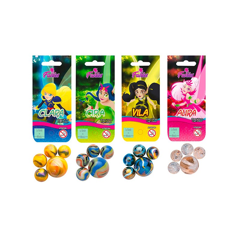 1 filet de 20 billes de 16 mm + 1 calot de 25 mm en display de 20, 4 modèles assortis : clara, cira, vila, aura. Pour collectionner, jouer et vivre des parties uniques pleines de fun.