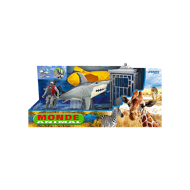 1 coffret avec 1 plongeur, 1 cage, 1 bateau et 1 requin pour une aventure palpitante au fond des océans !