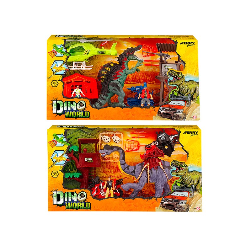 2 modèles assortis : spinosaure, diplodocus. 2 figurines, 2 véhicules et accessoires ce coffret promet des aventures dinos XXL.