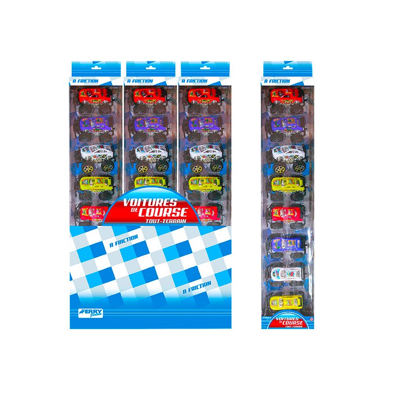 8 voitures de course tout terrain en display de 12. Prêtes à tout affronter, ces 8 voitures tout terrain foncent à toute allure ! Un look de compétition et une robustesse à toute épreuve dans un display ultra dynamique.