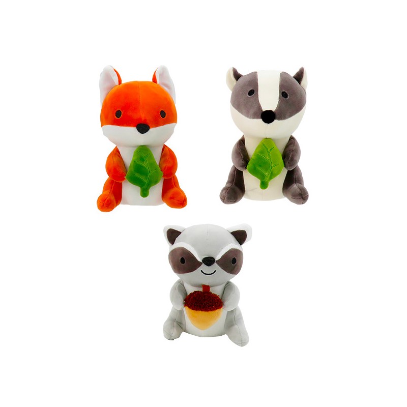 3 modèles assortis : renard, blaireau, ecureuil parfaite pour apporter une touche nature et pour des câlins réconfortants.