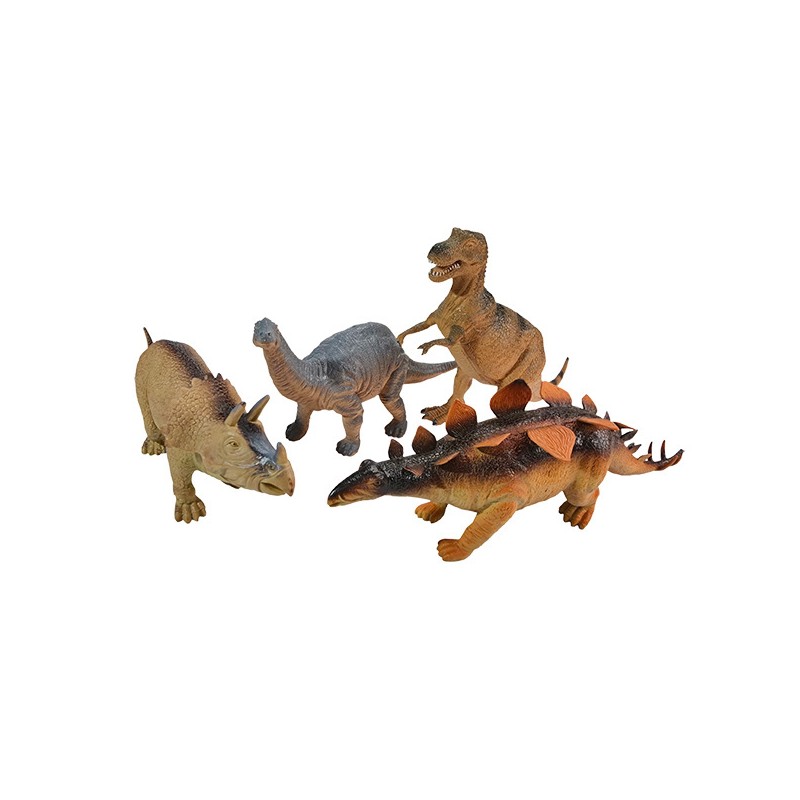 4 modèles assortis : 1 T-Rex, 1 stégosaure, 1 triceratops, 1 diplodocus, chacun de ces géants de 30?cm promet des câlins préhistoriques.
