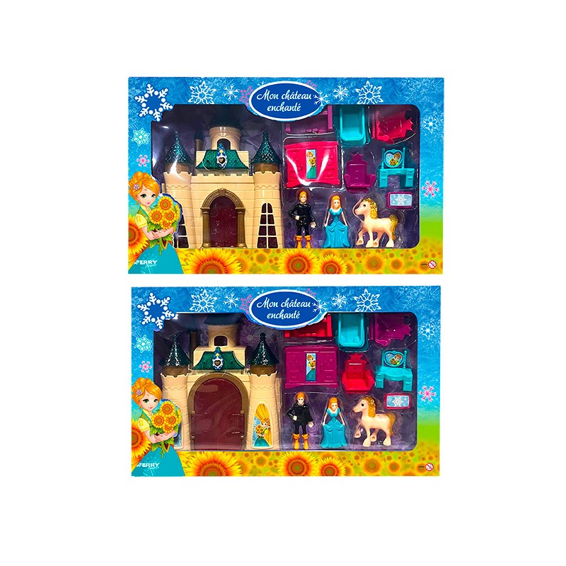 2 modèles assortis. 1 château enchanté avec couple royal et des accessoires disponible en 2 modèles assortis, pour des jeux de rôle féeriques et pleins dimagination.